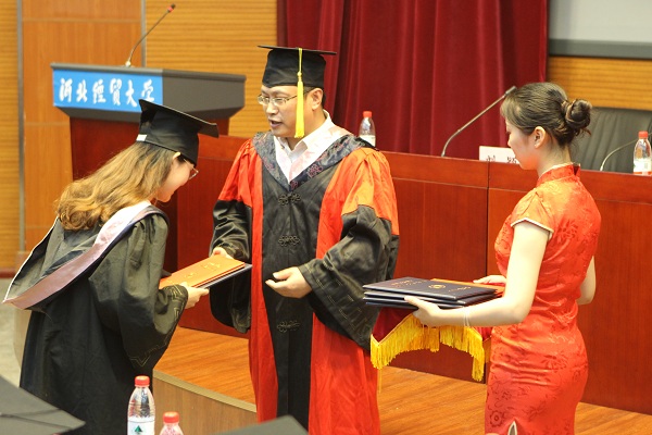 6月13日,太阳成tyc122cc集团在国际学术报告厅举办2019届本科生毕业典礼。太阳成tyc122cc集团经理王重润、党委副书记李晓燕、副经理刘颖出席,团委书记李德海、毕业班辅导员、部分教师到场,2019届毕业生及部分家长共计200余人参加。典礼由李晓燕主持。