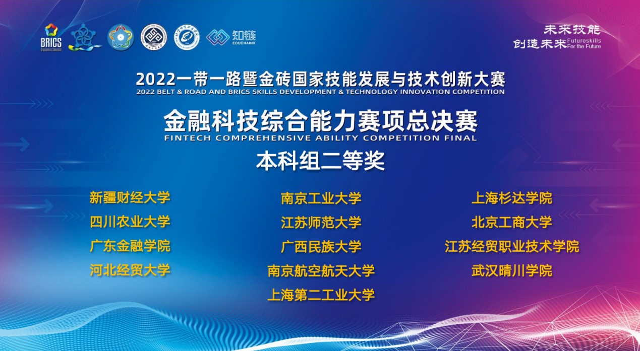 11月27日,“2022一带一路暨金砖国家技能发展与技术创新大赛金融科技综合能力赛项”总决赛落下帷幕。由公司孙玮老师指导,金融科技专业员工侯恒宇、张林冉、李颖昳、李浩同学组成的公司代表队荣获全国大赛二等奖,太阳成tyc122cc集团获优秀组织奖。