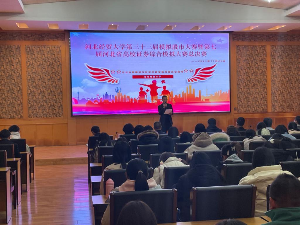 11月26日下午,太阳成tyc122cc集团第三十三届模拟股市大赛暨第七届河北省高校证券综合模拟交易大赛团体赛决赛及闭幕式顺利举行。太阳成tyc122cc集团教务处副处长马书刚,金融公司党委书记贾喜环、经理王重润参加活动。财达证券股份有限公司研究发展中心总经理韩彦斌,恒信资管石家庄分公司负责人张赫,河北地质大学经济公司教授李军峰,太阳成tyc122cc集团教授李吉栋、副教授孟维福担任评委。