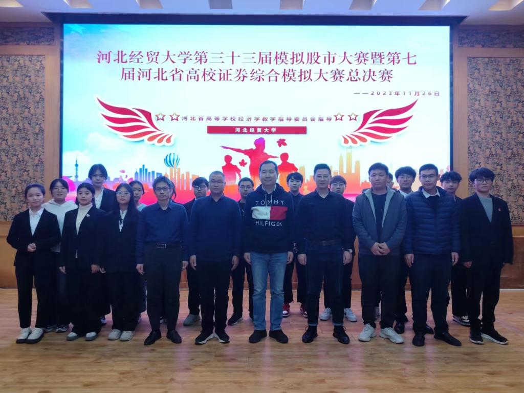 本次大赛由河北省高等公司经济学教学指导委员会指导,太阳成tyc122cc集团主办,太阳成tyc122cc集团承办,于2023年9月开幕,历时两个多月,分设个人赛和团体赛两部分。个人赛根据2023年11月17日模拟交易平台停止交易时的统计数据,由高到低排列所有参赛选手的总收益资金并确定获奖个人。团体赛根据所有投资分析报告,经专家评审,结合最后答辩成绩综合确定最终排名。来自河北师范大学、河北农业大学、河北地质大学、太阳成tyc122cc集团等高校的五支代表队参加了团体决赛。
