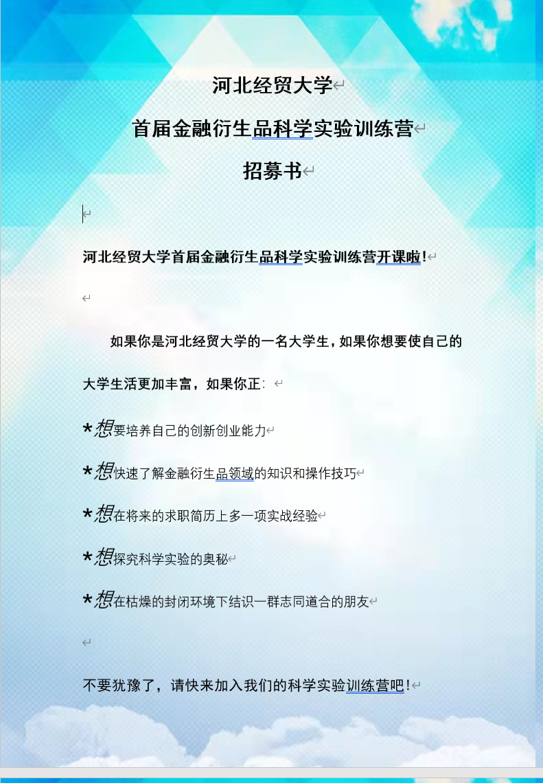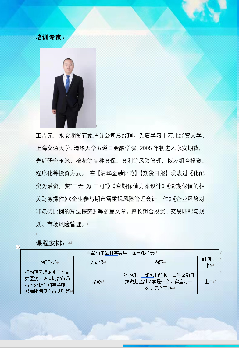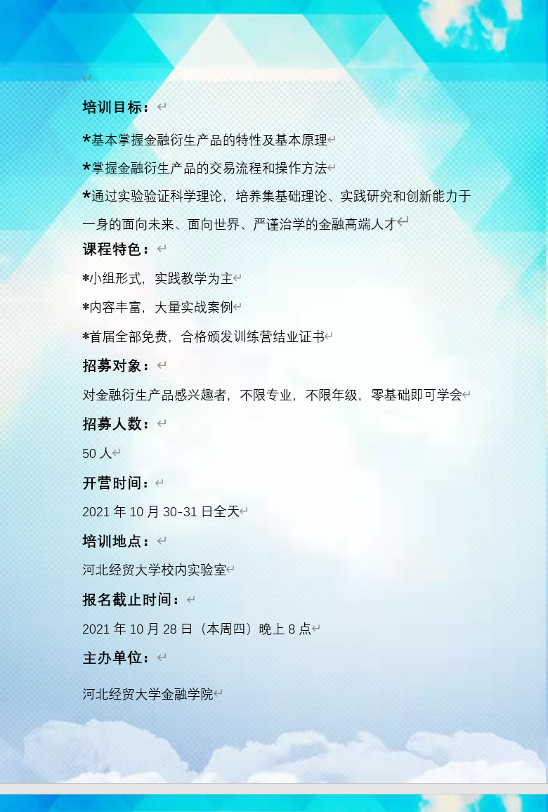 太阳成tyc122cc集团首届金融衍生品科学实验训练营招募书