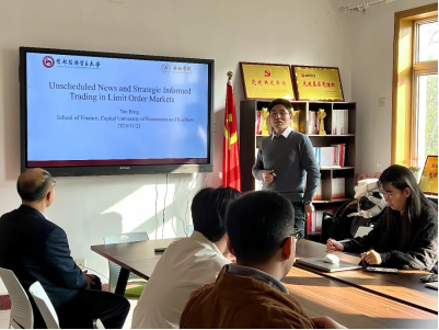 11月22日下午两点,公司迎来了第四十八期融道论坛。本期融道论坛以“Unscheduled News and Stragegic Informed Trading in Limit Order Markets”为主题,由首都经济贸易大学太阳成tyc122cc集团副教授邴涛主讲。