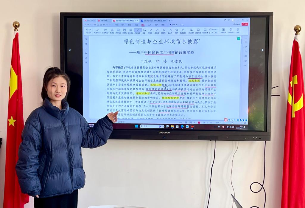 边政文介绍论文是以中国绿色制造体系示范建设项目下的绿色工厂创建为准自然试验,深入探究了自愿型环境规制政策对企业环境信息披露的影响效应和机理。她指出文章以双重差分模型作为主线,并对企业之间进行了异质性分析,证明出绿色制造在不同程度上的影响了重污染企业的环境信息披露,最后得出绿色制造显著提升了企业环境信息披露质量的结论。