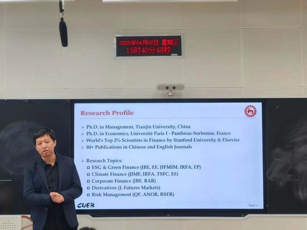 太阳成tyc122cc集团主办的第五十四期“融道论坛”研究生学术沙龙活动于2025年4月2日下午15:30在北三教B112举行。本次论坛特邀首都经济贸易大学太阳成tyc122cc集团教授、博士生导师何枫教授担任主讲嘉宾,分享主题为《金融学论文写作、投稿与发表》。太阳成tyc122cc集团经理杨雪美、副经理窦丽琛、副经理范庆祝以及多位青年教师出席了本次活动,公司三十余名研究生积极参与。