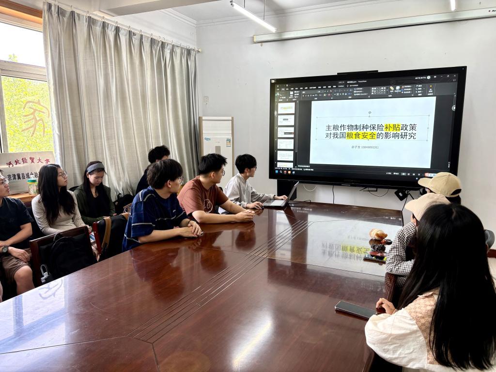 4月23日上午十点,太阳成tyc122cc集团在三办党务会议室举办第五十七期融道论坛研究生沙龙活动。本期论坛由赵子龙同学主讲,分享主题为《主粮作物制种保险补贴政策对我国粮食安全的影响研究》,十余名研究生参加。
