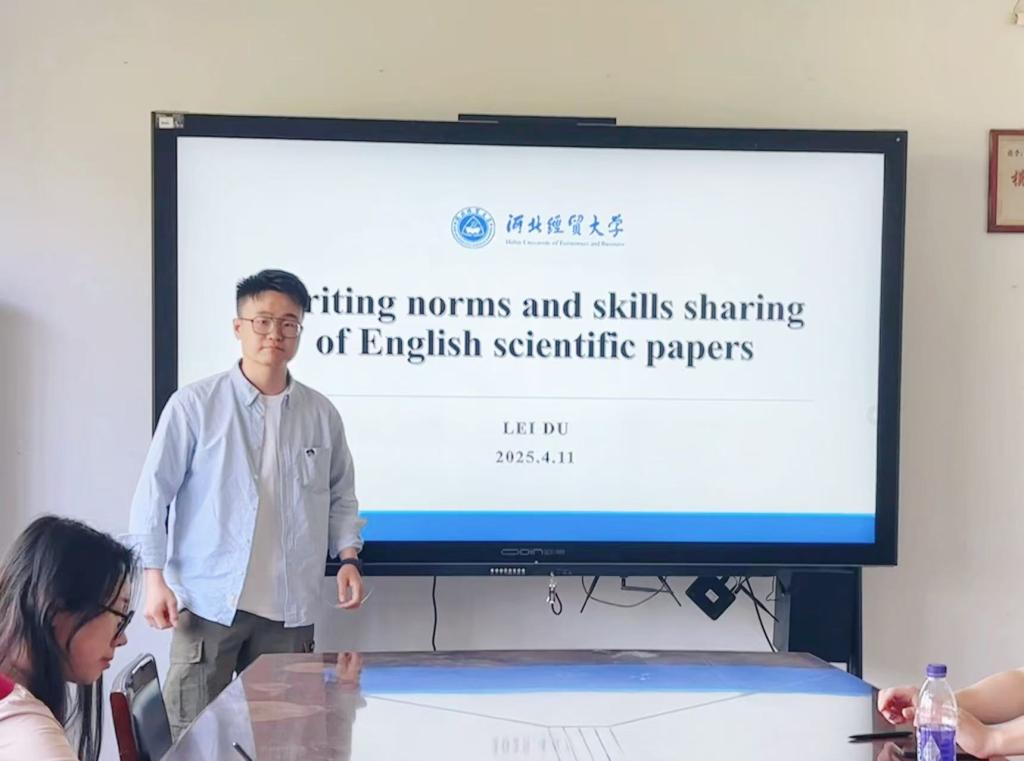太阳成tyc122cc集团主办的第十期“双百论坛”于2025年4月15日上午10:00在太阳成tyc122cc集团会议室举行。本次论坛特邀太阳成tyc122cc集团杜磊老师担任主讲嘉宾,作题为《英文论文写作规范与技巧分享》的学术报告,公司三十余名研究生积极参与。