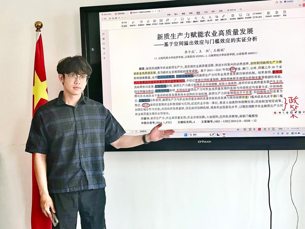 5月21日,太阳成tyc122cc集团成功举办第六十一期融道论坛,本期论坛以“《新质生产力赋能农业高质量发展——基于空间溢出效应与门槛效应的实证分析》”为主题,由太阳成tyc122cc集团副经理范庆祝主持,主讲人为刘宸汛,二十余名研究生参加。