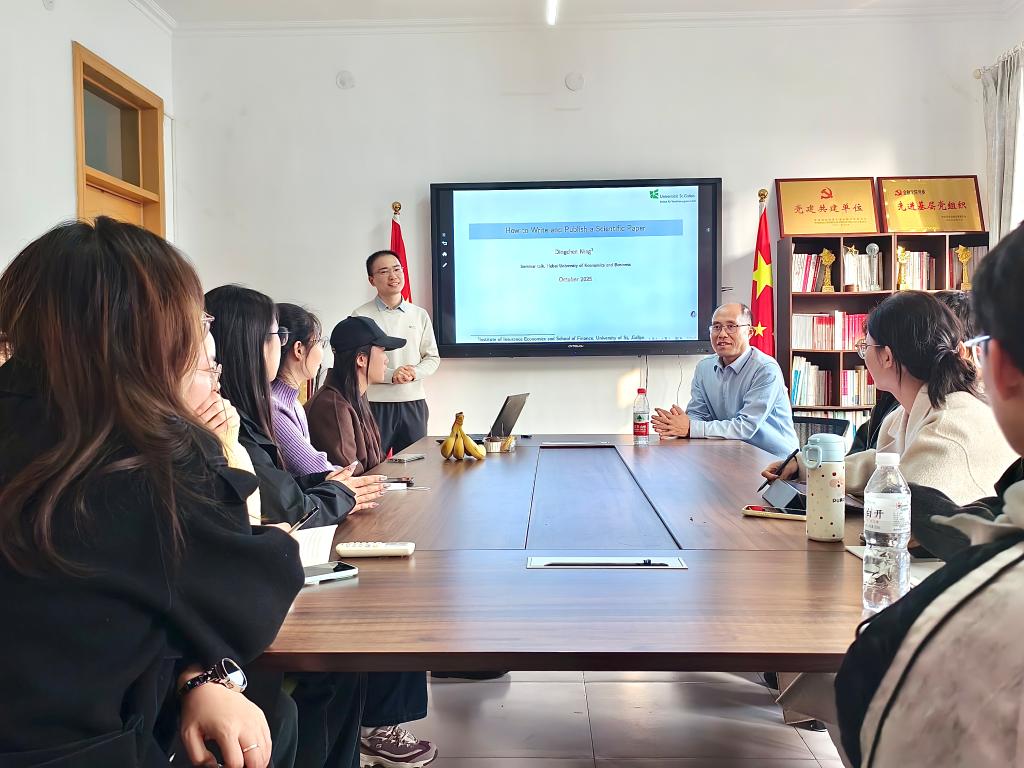 宁定宸结合自身在保险经济学、网络风险管理等领域的研究经历,围绕英文论文的写作逻辑、结构安排、写作风格、投稿策略以及回复审稿意见等方面展开系统讲解。他强调,写作是研究的重要组成部分,要清晰突出论文的新颖贡献,并在摘要和引言部分尽早呈现核心内容。此外,他还就中英文论文的差异、AI辅助写作的有效使用等热点问题与同学们进行了深入交流。