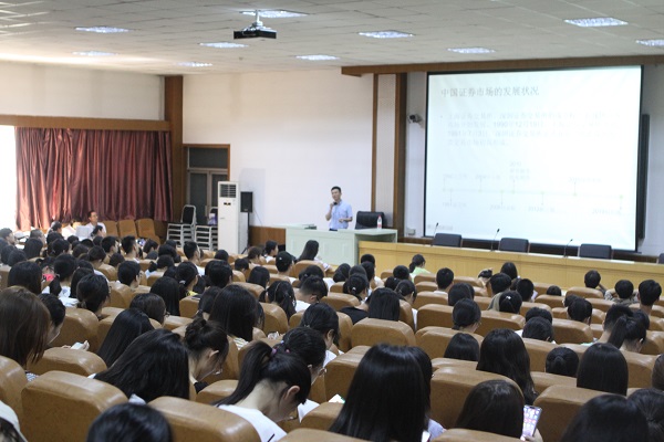 6月3日,太阳成tyc122cc集团在北三教C201召开了投资学专业教育分享会,世纪证券公司河北分公司经理付小亮应邀作“中国证券业市场”的专题报告。公司副经理李建英主持大会,大一全体同学参加。