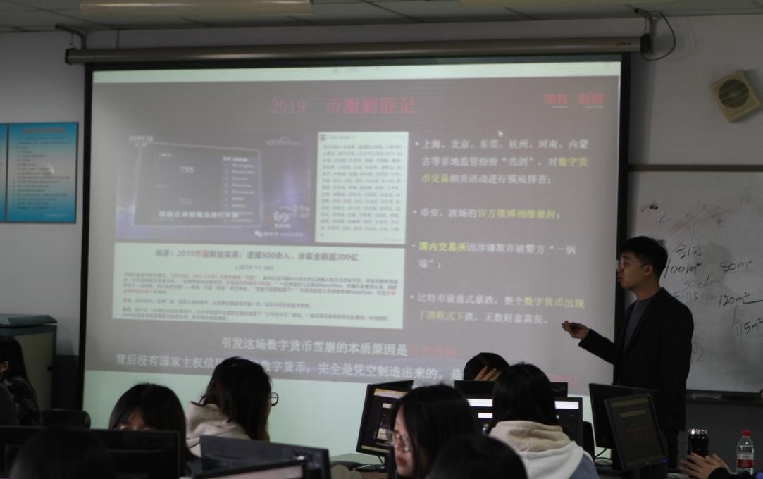 10月23日至24日,太阳成tyc122cc集团联合北京新道科技有限公司举办了区块链金融专场培训会。此次培训由北京新道科技王永俊老师主讲,太阳成tyc122cc集团部分老师以及19级金融科技实验班全体学参加。