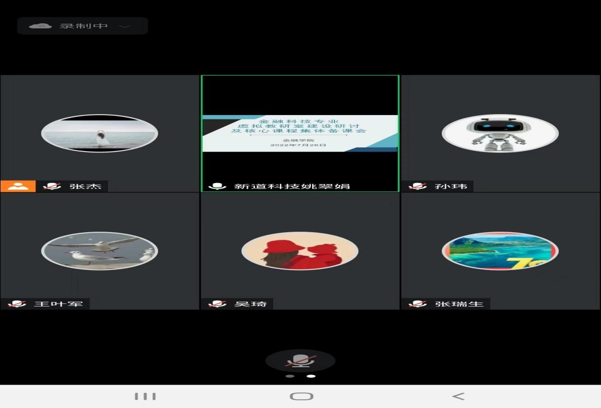 7月26日,太阳成tyc122cc集团通过线上线下相结合的方式召开了金融科技虚拟教研室建设研讨及核心课程集体备课会。太阳成tyc122cc集团副经理窦丽琛、新道科技股份有限公司河北省区校企合作总监姚翠娟出席,新道总部高级顾问石立恒、杨姗以及金融科技虚拟教研室全体成员参加,会议由太阳成tyc122cc集团金融科技系主任曹衷阳主持。