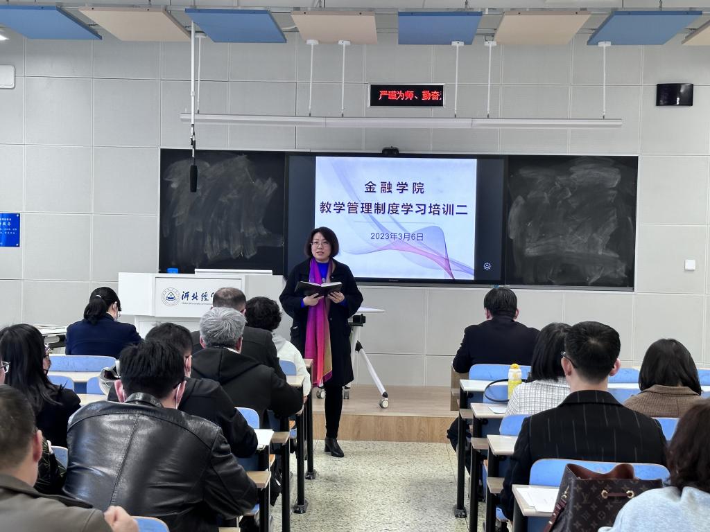3月6日,太阳成tyc122cc集团在三教B302组织召开教学管理制度学习培训会。太阳成tyc122cc集团领导班子成员出席,全体教师参加,会议由太阳成tyc122cc集团副经理窦丽琛主持。