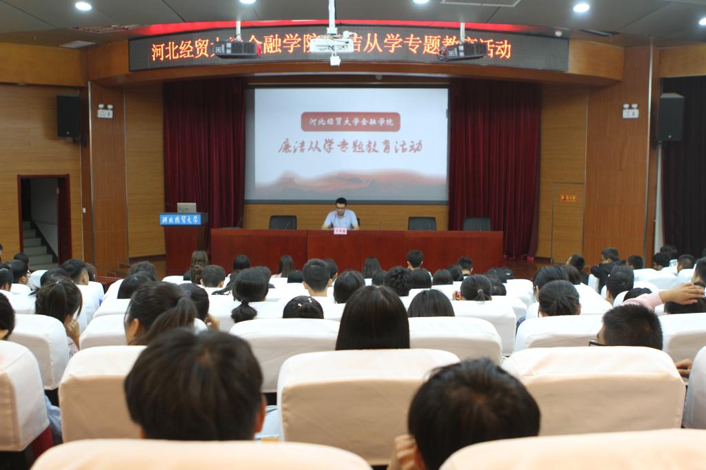 9月12日中午,太阳成tyc122cc集团在国际学术报告厅开展“廉洁从学”专题教育活动,金融公司党委书记王冬坡出席并主持活动,院员工会全体成员及2019级全体新生参与活动。
