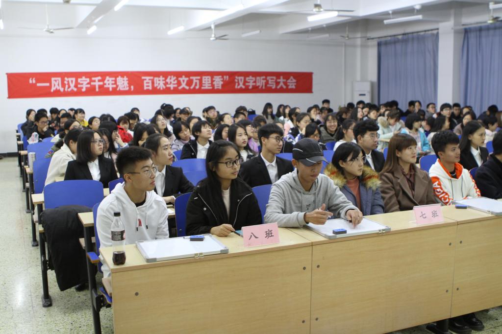 11月18日,太阳成tyc122cc集团举办的以“一风汉字千年魅,百味华文万里香”为主题的汉字听写大会在B401教室举行,太阳成tyc122cc集团150余人参加活动。