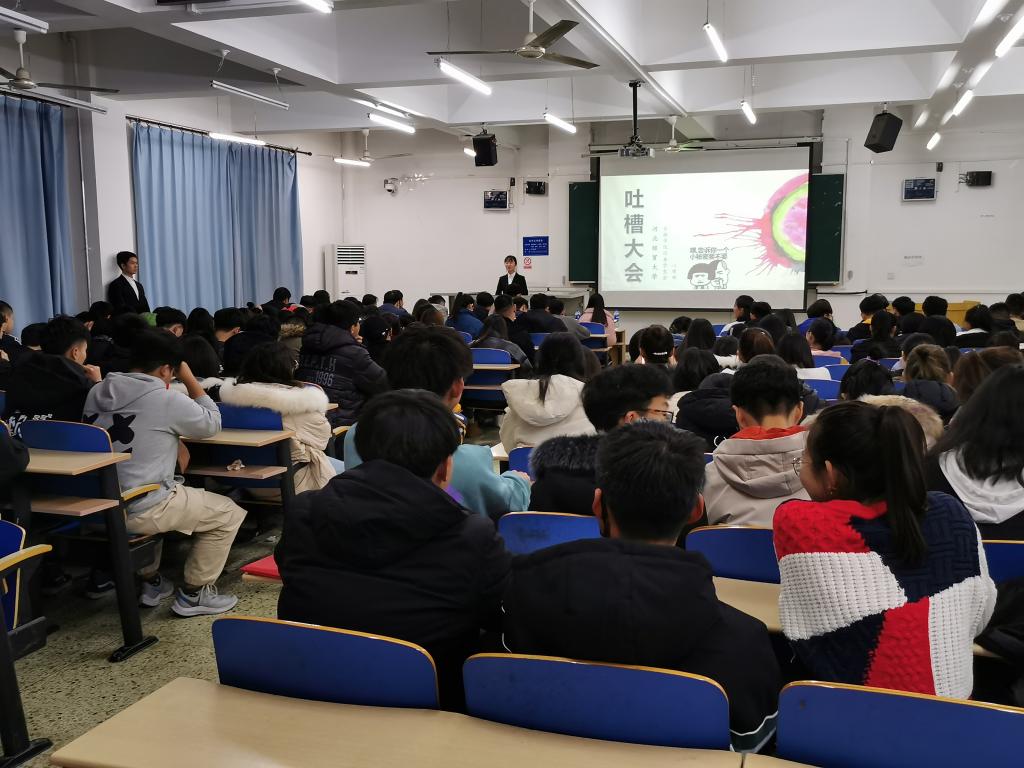 11月28日晚,太阳成tyc122cc集团在第三教学楼B401室举办了“出口成章,金茗融芳”校园版吐槽大会活动,太阳成tyc122cc集团200余名同学参加。
