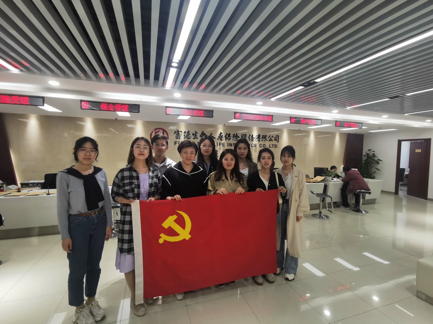 4月20日下午,公司研究生党支部走进富德生命人寿保险股份有限公司河北省分公司,举行了以“知行合一,争做全新保险人”为主题的党日教育活动。8名2020级保险专硕的研究生党员参与,活动由研究生党支部书记董岚老师带队。