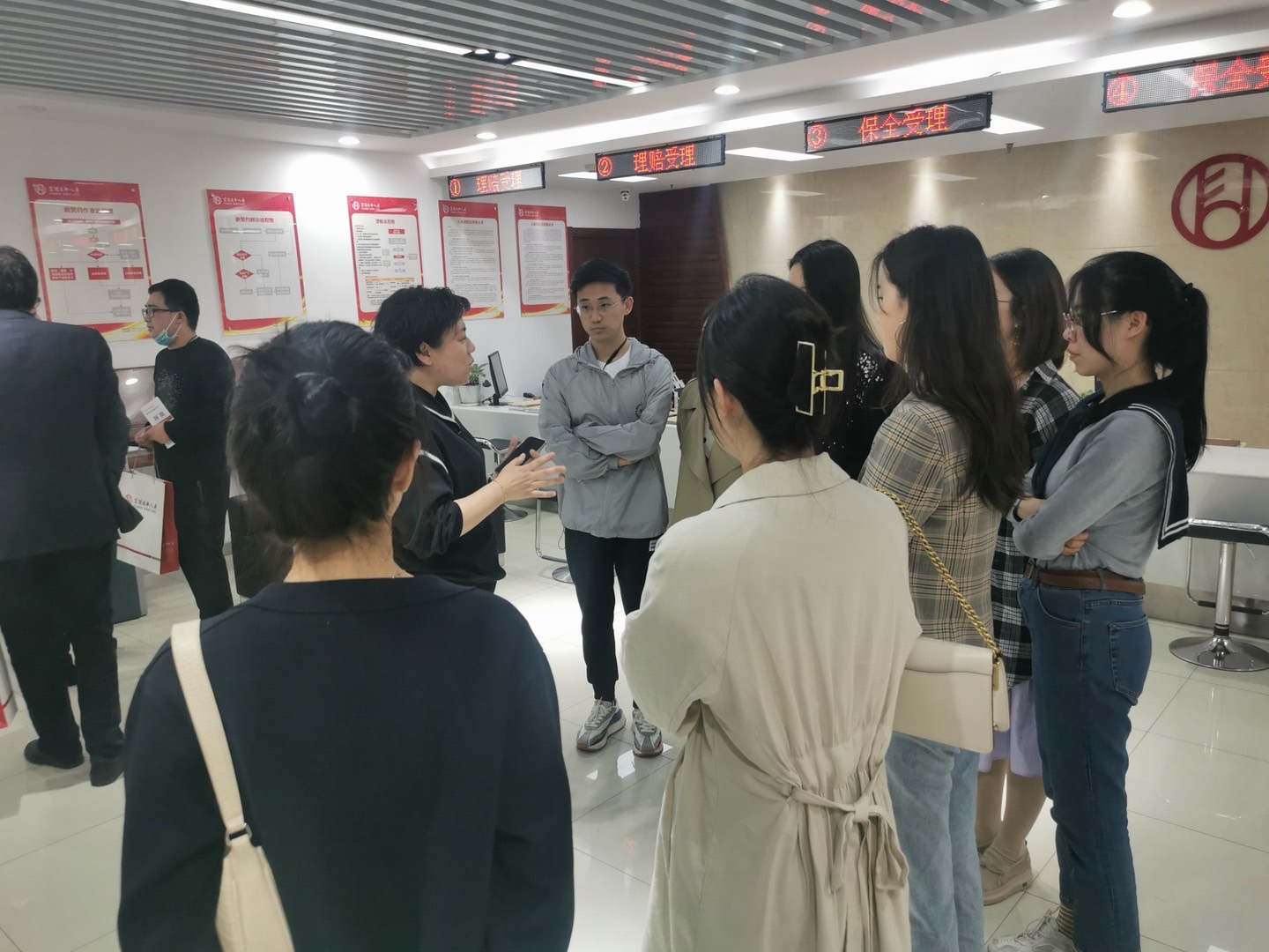 同学们参观了富德生命人寿河北分公司的标准化建设的客服柜面,聆听了富德生命人寿的公司背景、荣誉体系以及公司的公益活动“小海豚”计划。并且通过了解富德生命人寿的服务优势、运营规则、理赔案例等内容,进一步加深了对其企业文化“富及民众,德行天下”的认知。在和公司一线管理团队交流的过程中,同学们体验了当下保险科技带给行业发展巨大的引领和推动作用,感受到了人工智能的效率,油然而生对于保险专业的热爱。