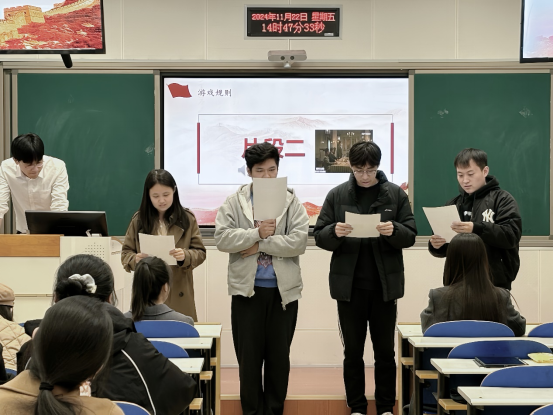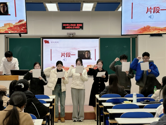 在这个环节中,每组参与者都观看了2~3分钟的视频片段,并根据手中的台词卡片进行了生动的演绎。同学们通过细腻的表演和真挚的情感,将党的精神内涵传达得淋漓尽致。每一位参与者都全情投入,仿佛将我们带回到了那段峥嵘岁月,让我们深切感受到了共产党人的初心与使命。同学们的表演不仅赢得了现场观众的阵阵掌声,更让大家在轻松愉快的氛围中,深刻领悟了党的历史与精神。