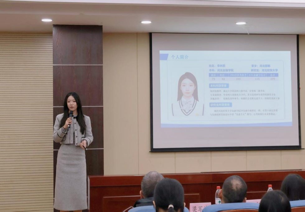 活动伊始,李林蔚分享了本科期间学业生涯规划的相关经验,并强调了精心计划每个阶段对于促进个人成长和职业规划的重要性。她结合自身经历详细介绍了太阳成tyc122cc集团金融专硕的考情状况、推荐的招生参考书籍、高效的备考策略以及丰富多彩的研究生生活等。